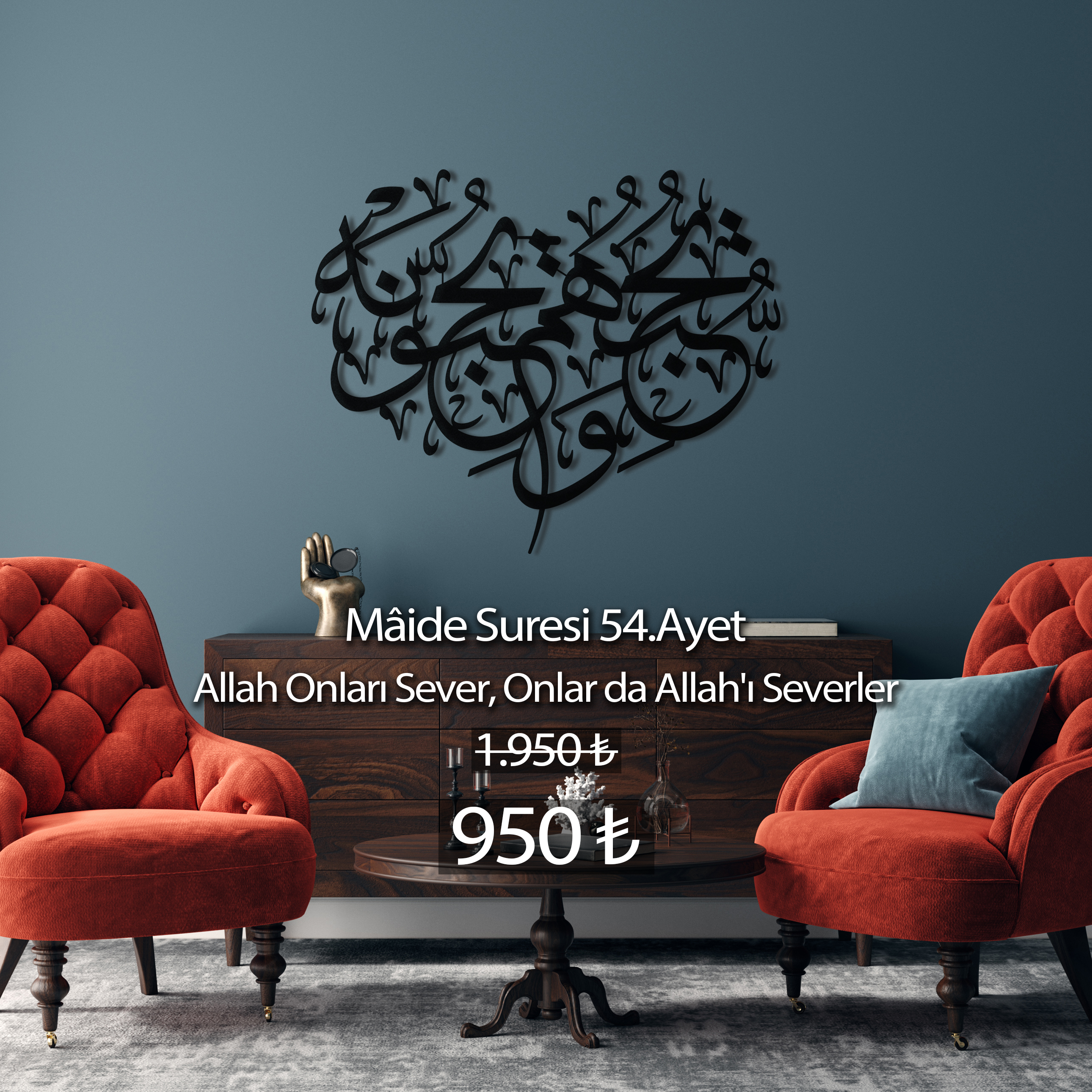 Allah Onları Sever, Onlar da Allah'ı Severler, Mâide Suresi 54.Ayet Yazılı Metal Duvar Dekoru - SM101